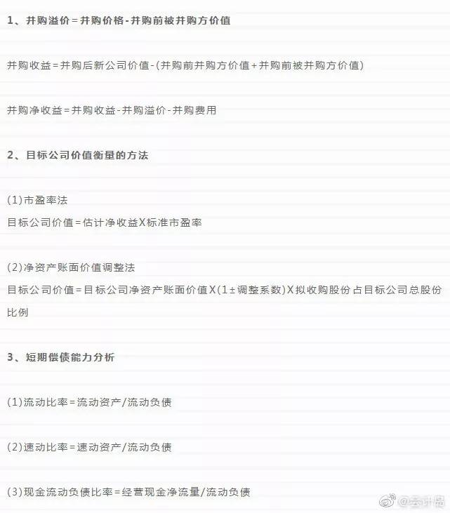 CPA考试公式大全