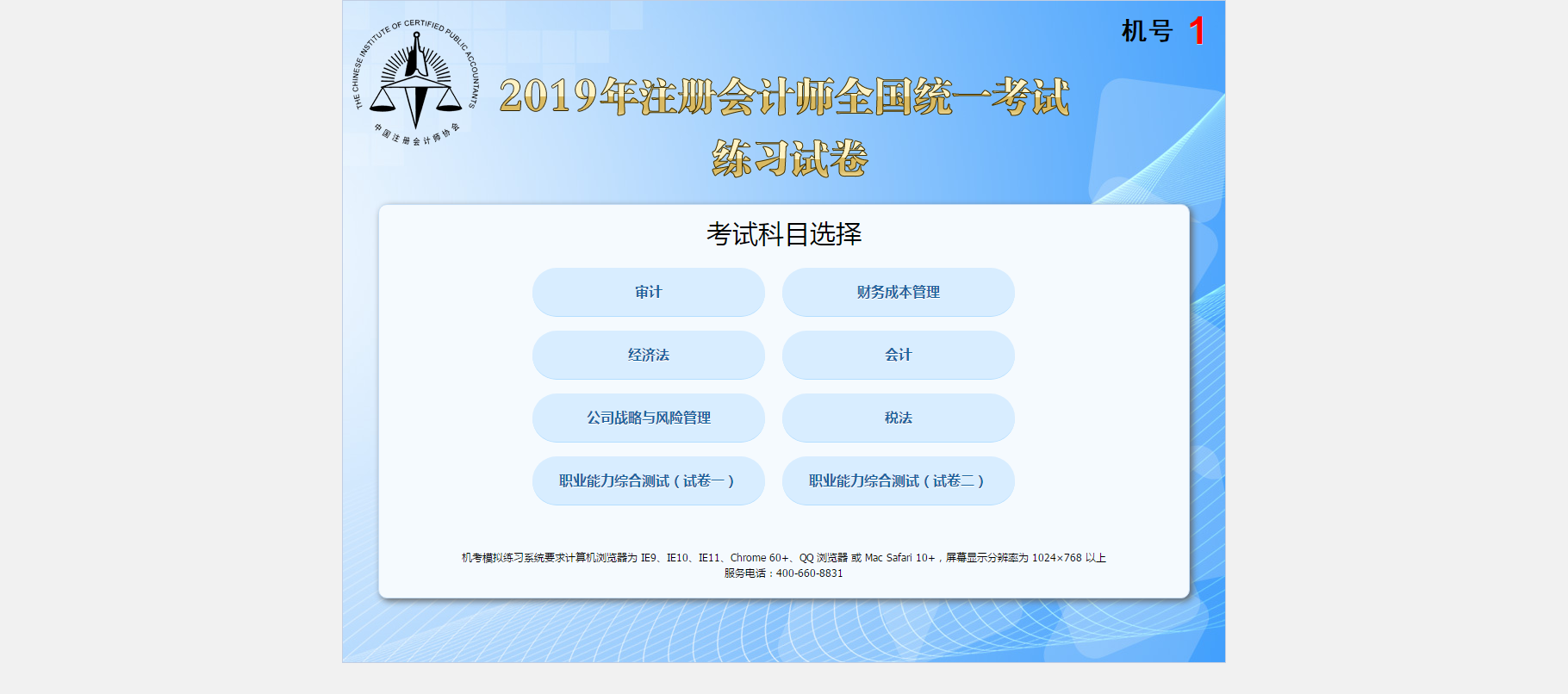 2019年官方公布的模拟考试系统网址为:http://cpademo.cicpa.org.cn/(用电脑复制到浏览器打开哦)