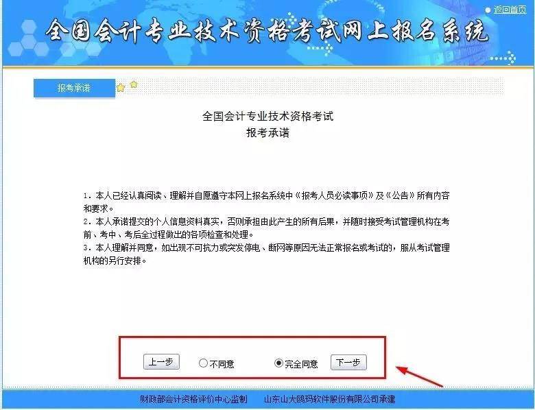 第4步:点击进入以后,查看网上报名须知,选择“完全同意”以后,点击“下一步”。
