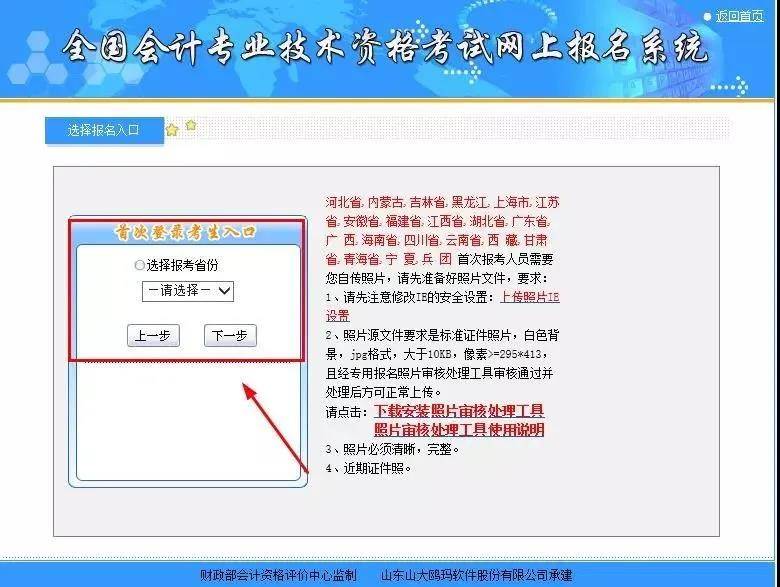 第5步:进入报名入口,选择所在省份,查看照片上传注意事项,点击“下一步”。