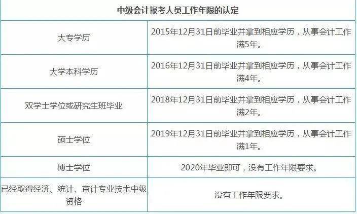 所述有关会计工作年限,截止日期为2020年12月31日;在校利用业务时间勤工助学不视为正式从事会计工作年限;参加中级资格考试工作年限为取得规定学历前后从事会计工作时间和总和。