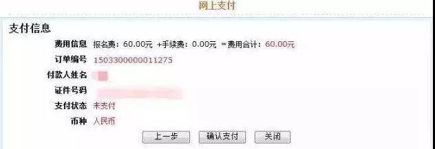 完成报名资格审核的报名人员,以及无需进行资格审核的报名人员、应届毕业生报名人员在报名信息填写完成后,通过网上支付交纳考试报名费。